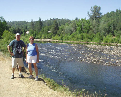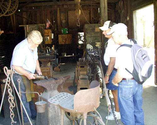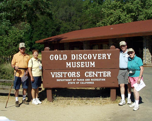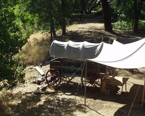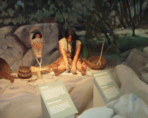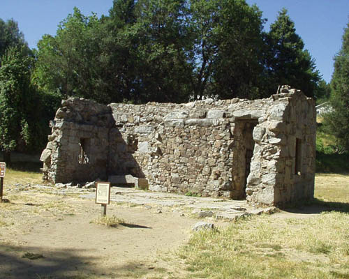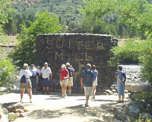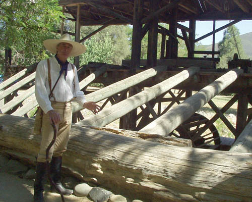 Replica of Sutter's Mill and man playing the part of James Marshall. |