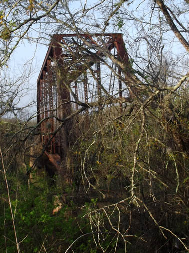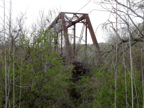 | Abandoned RR bridge hiding in the trees along the trail. |
