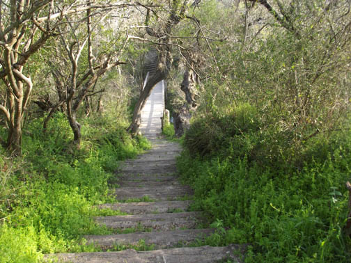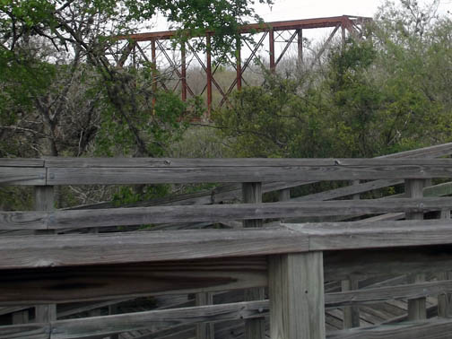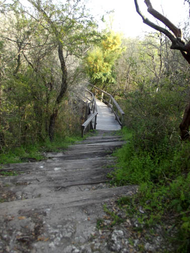 | Climbing the boardwalk ramp we could see the bridge again. |