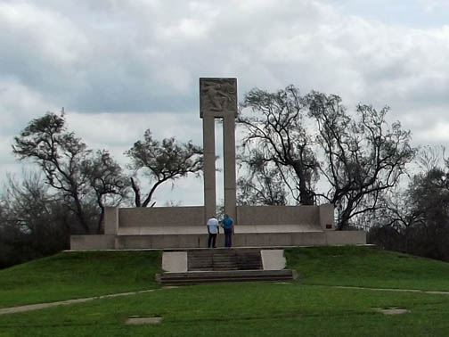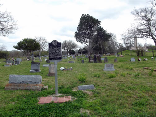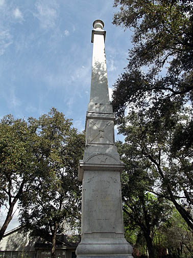 | In 1885 one of the survivors of the massacre (Wm Hunter) and the Fannin Monument Association erected an obelisk memorial to Fannin and his men. |