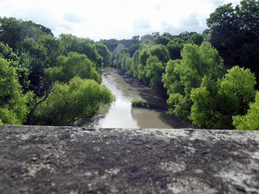 | Crossing the San Antonio River on a highway bridge. |