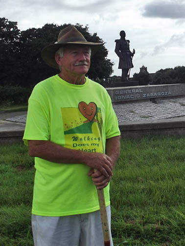 | Ed with the statue of General Ignacio Zaragoza. |
