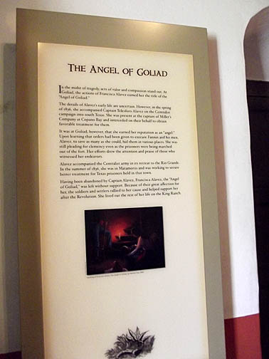 | Tables and benches that recognize Francisa Alvarez, the “Angel of Goliad” and her descendants. |