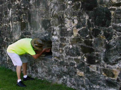 | As Ed demonstrated for us, you would sit or kneel to use the gun ports. Sure couldn’t stand like this for long to shoot. |