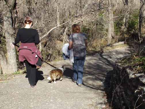 | Aggie leading Brandy and Ed up the trail. |