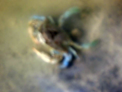 | Heading back on the hike/bike trail, Carol spotted crabs close to shore. Sorry for the poor quality, but it was murky water. |