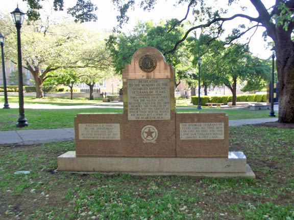 | Monument is dedicated to all Texan veterans who have been disabled while serving in the U.S. military services. |