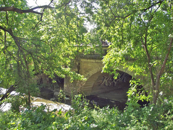 A beautiful double-arch stone bridge over Waller Creek. |