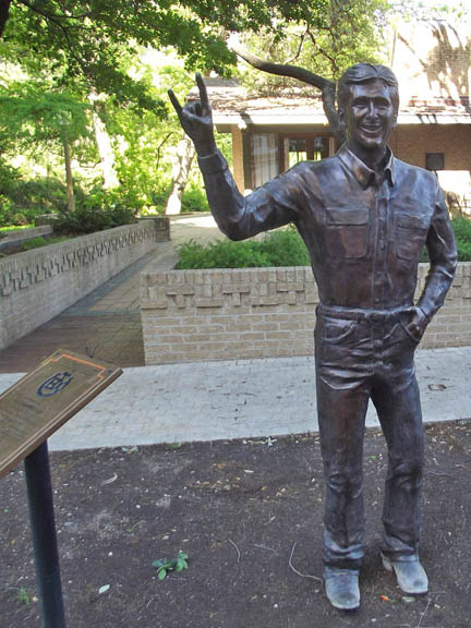 The "Til Gabriel Blows His Horn" statue pays tribute to the Longhorn Band. |