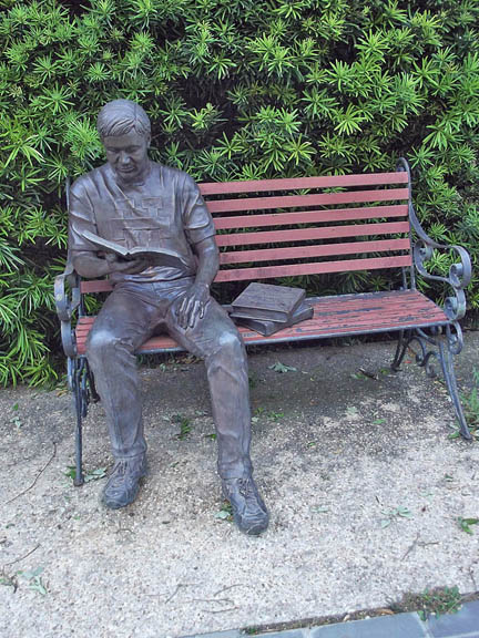 | Bench sculpture in front of the Alumni Center. |