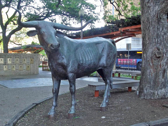 Longhorn in front of the UT Alumni Center. |
