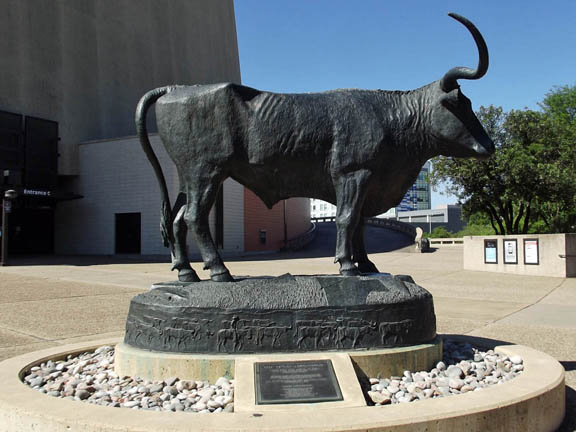 Longhorn in front of the Frank C. Erwin, Jr., Special Events Center |