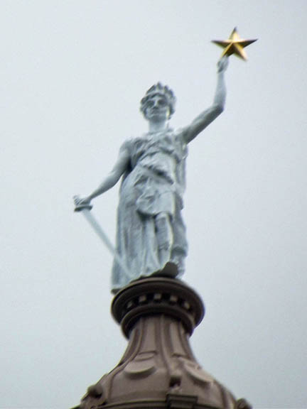 | Goddess of Liberty atop the capitol is a replica of the original designed by Elijah E. Myers and removed Nov. 24, 1985. |
