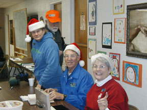 Our walk start volunteers. They were in Christmas Spirit. |