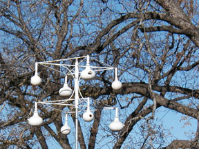 I liked this pole with the gourd birdhouses. |