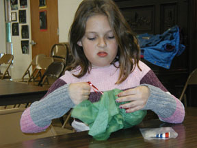 Lenore having trouble getting the ribbon off her gift. It was a very cute teddy bear. We tried to get her to name it Boerne, but she went with Jennifer. |