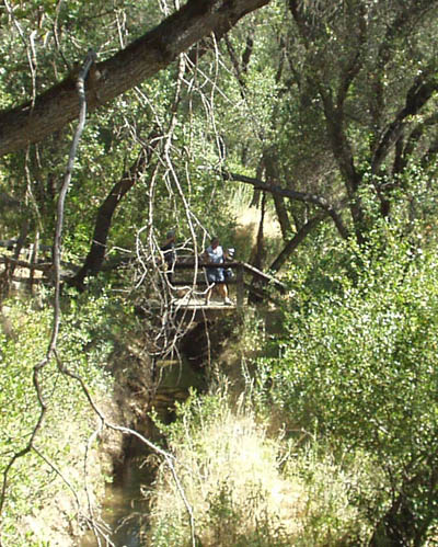 | Carol crossing bridge ahead of me on trail. | ![]() |