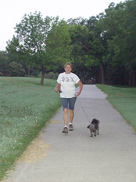 | Carol with my dog Yahoo. Nice wide hike/bike trail. |