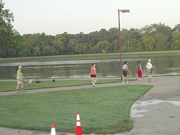 We are gradually catching them as they head around lake. |