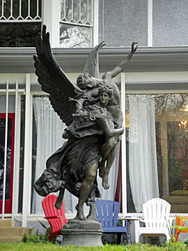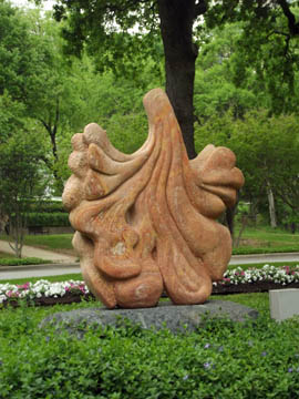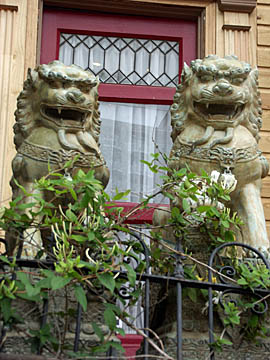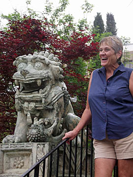 | Carol and a Shishi (Chinese Guardian Lion). |