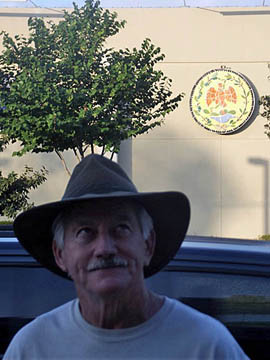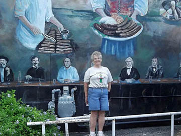 Mosiac design on building behind Ed. |