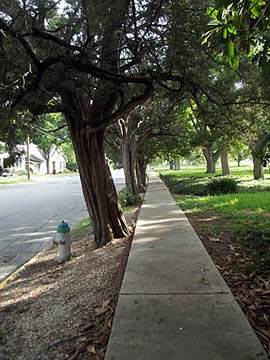 Cedar shaded sidewalk. |