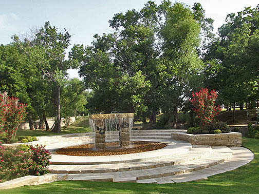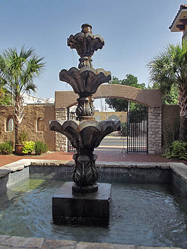 Fountain near the benches. |